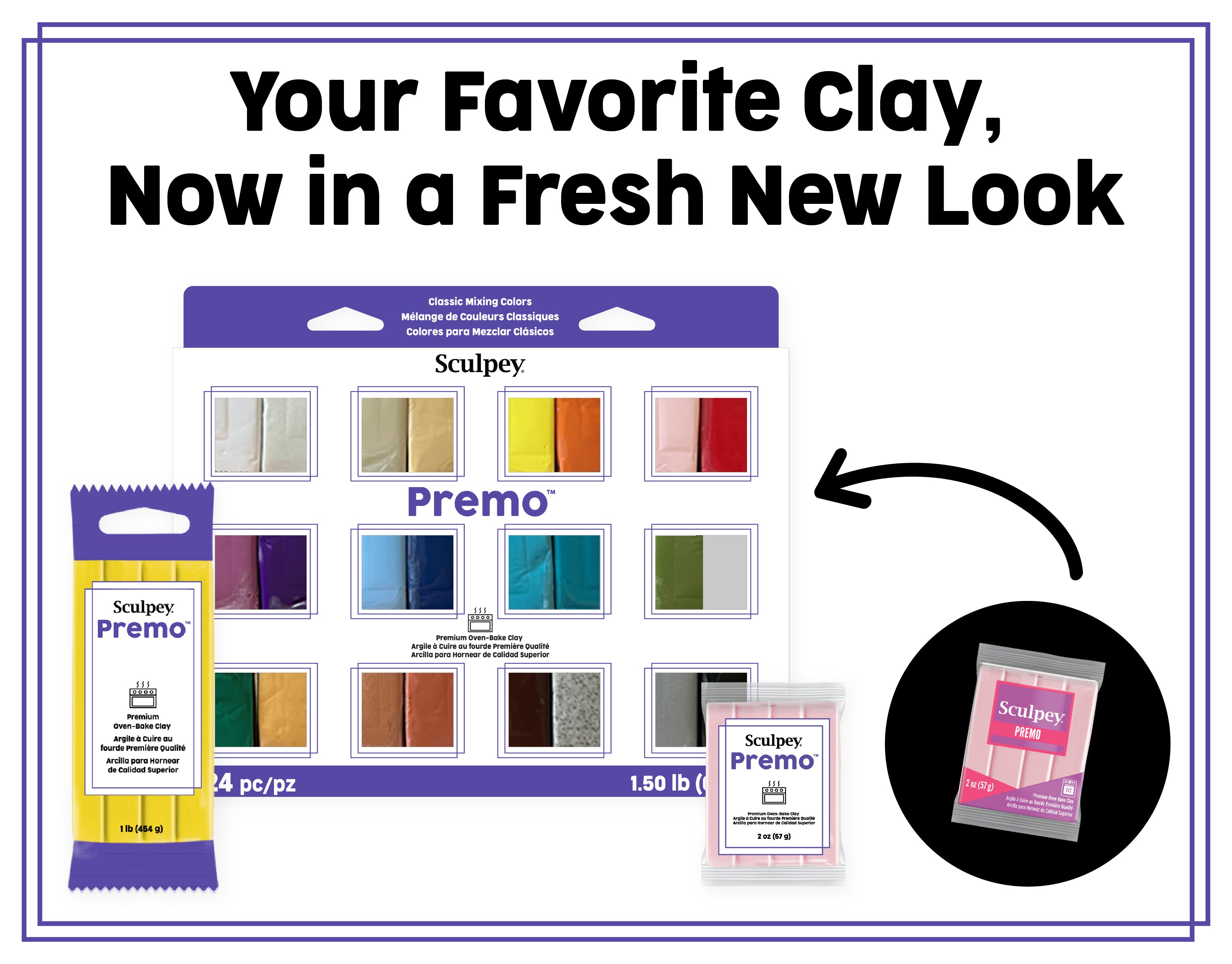 Sculpey offers several variations of clay you can use in different applications, no matter your skill level. It's available in many colors, including glow-in-the-dark and metallic finishes, unlocking endless creativity for clayers of all ages. Whether it’s mixed media, beadwork, sculpting, or home decor;clay allows us to express our imaginations through our hands and the medium that allows the most possibilities is polymer oven bake clay.