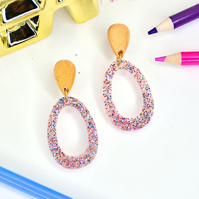 Liquid Sculpey® Confetti Clear and Gold Hoop Earrings