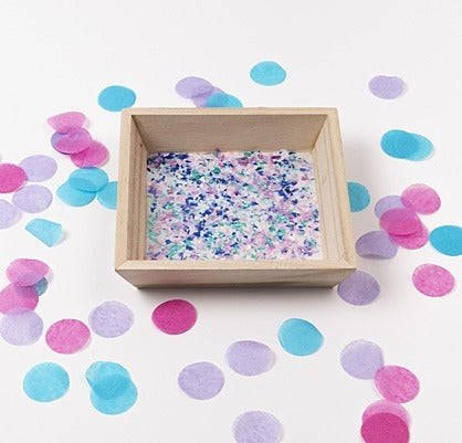 - Foil glitter or confetti in blue, purple, turquoise, clear pink, and clear iridescent