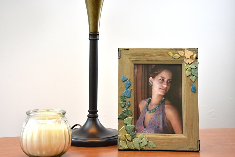 Once you have your leaves arranged, carefully glue each leaf into place and add your photo to your new frame!