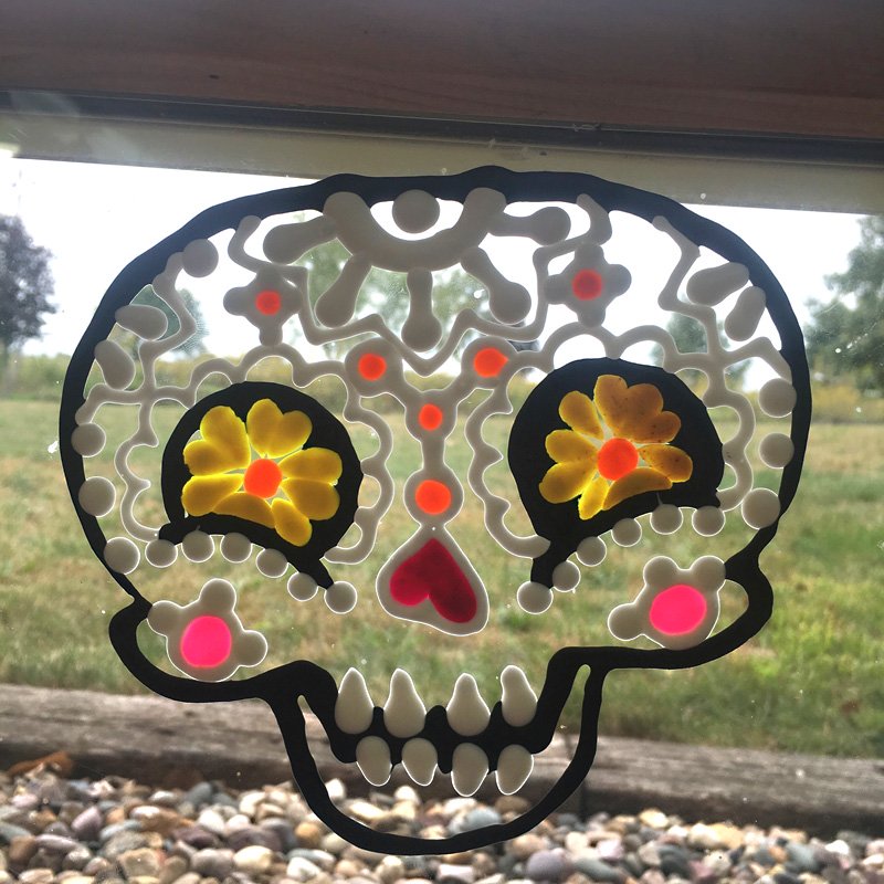 Bake the skully at 275°F for 15 minutes. When it is completely cool, gently peel it off the glass and place on a window to enjoy.
