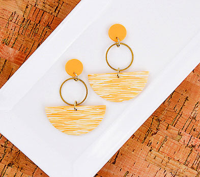 Sculpey Soufflé™ Ochre Faux Ikat Swing Earrings
