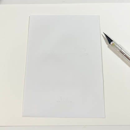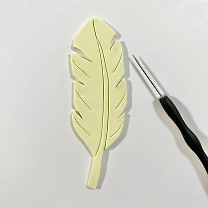 Cut around your stencil with the X-acto knife and save the scraps for a future project. I took my needle tool and added additional details to my feather as shown in the photo.
