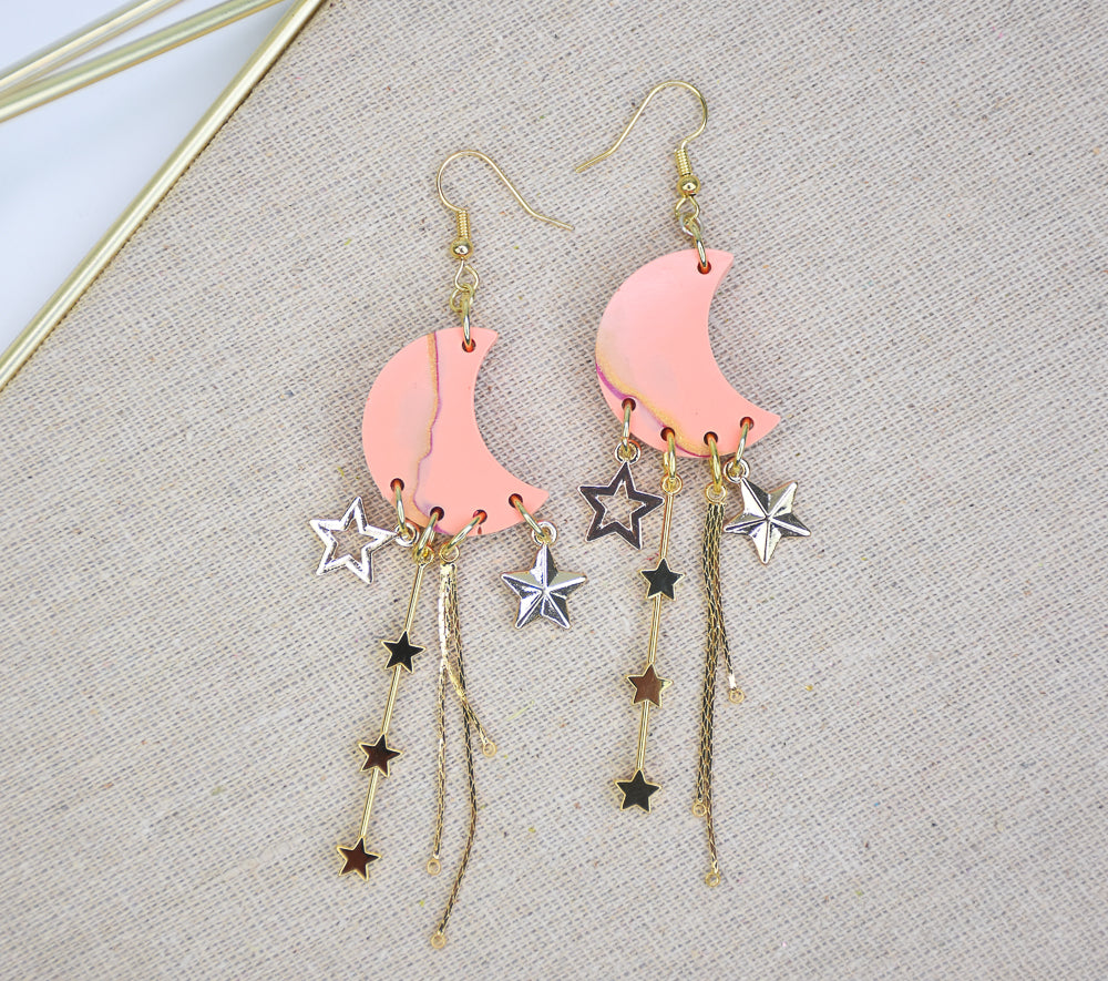 Dynamic colors and celestial shapes combine in these clever earrings to create a one-of-a-kind look that you can create in an hour!