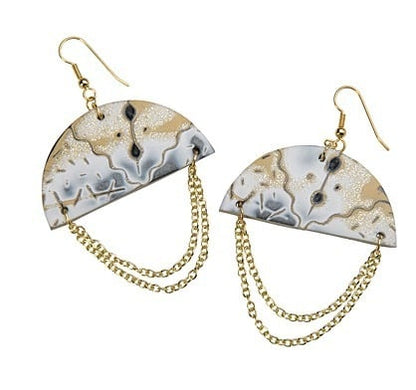 Premo Sculpey® neutral colors team up to create an exceptional Mokume Gane pattern for these umbrella earrings.