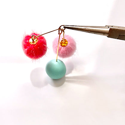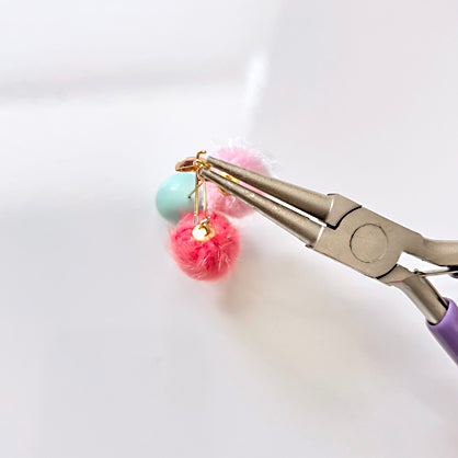 Place a pom pom through the loop and close it, making sure the length is shorter than the the Aqua ball. Hook it onto the other head pin to join.