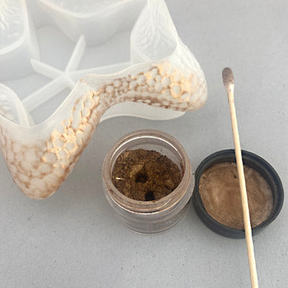 With the mold inside out, spread a light coating of mica powder all over the areas that are textured with a cotton swab.