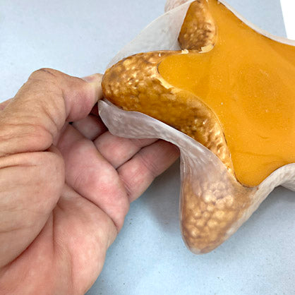 Pour the Amber Translucent Liquid Sculpey® (LS) in the center of the floor and allow it to spread naturally into the walls. The starfish took two bottles of liquid for filling.
