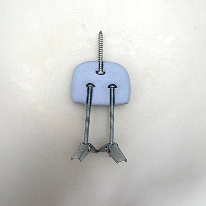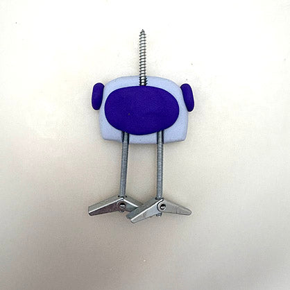 Push the longer 1.25” screw into the surface of the body. Push the toggle anchors into the surface of the body as shown. Do not push the metal pieces all the way through - they will be sandwiched inside the clay after we put the details on top.
