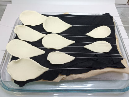 - A piece of white card - folded into a fan concertina to support the leaves during baking.