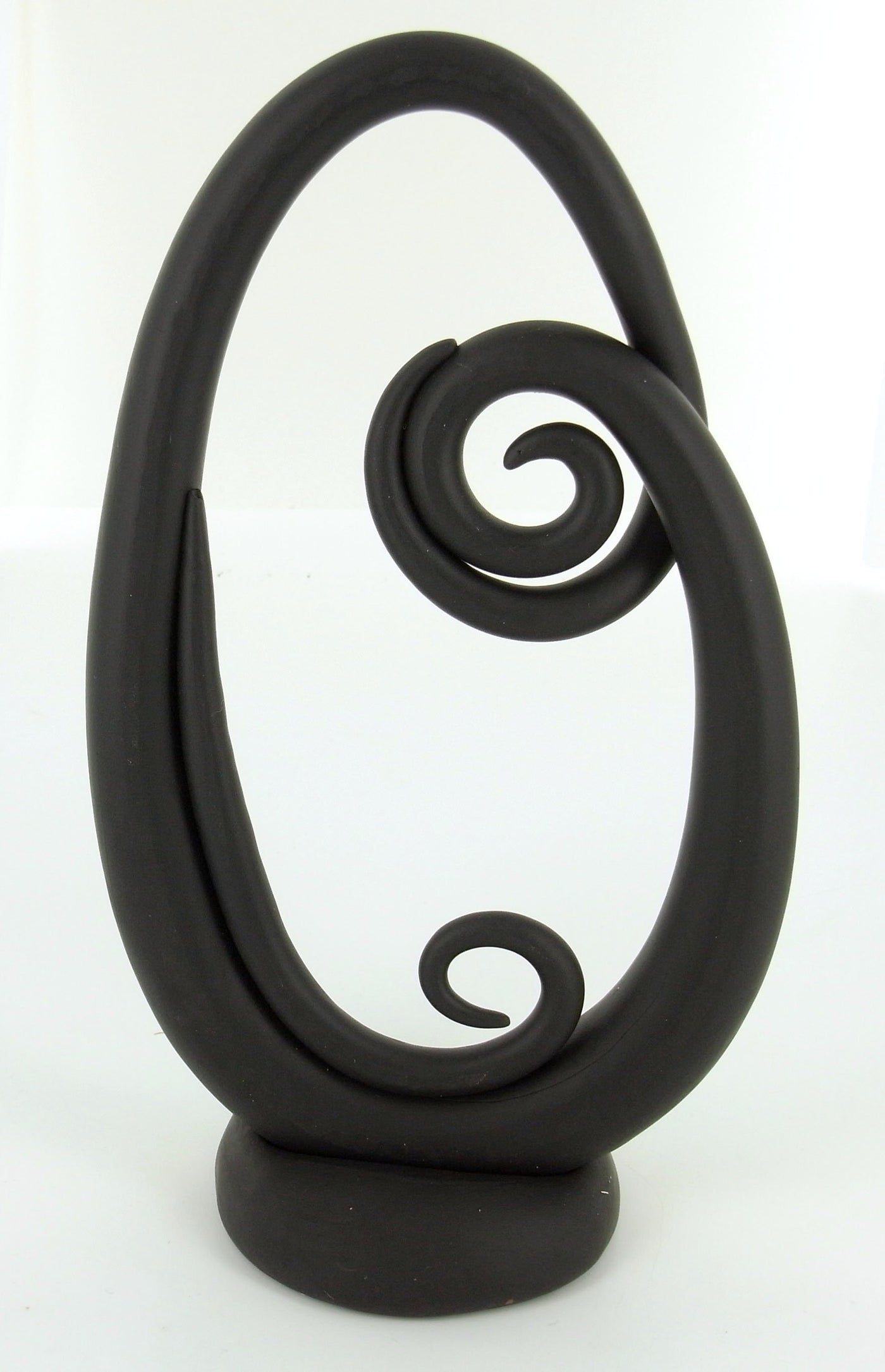 Continue rolling the shape until it is 31" long, thick in the middle and tapered on each end. Lay a sheet of baking parchment in front of you to lay your design on. This way it is easier to pick up and move to a baking sheet and the parchment keeps the clay from getting shiny spots during baking. Roll one of the left end up into a loose spiral. Bring the right end around the top of the left side. Curve the right side around the bottom edge of the spiral and gently push the end of it to the side of the spiral. Refer to finished photos for placement.