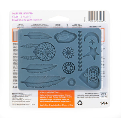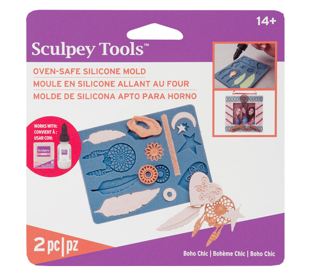 Whether you're new to clay molds or are an avid clayer and have been using them for years, this Boho Clay mold will help you construct exciting new pieces in only a few steps. This Sculpey® silicone bakeable mold is made out of a flexible, non-toxic silicone material for a safe, easy-to-use option to help make your ideas a reality.