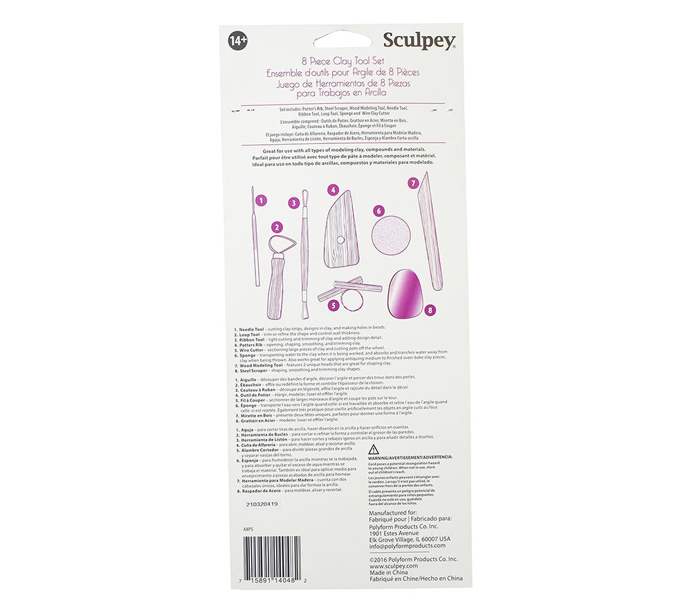 You can let your imagination soar with the eight-piece clay sculpture tool set from Sculpey®. We design our sculpting tools to enhance your crafting experience by being as versatile as our Sculpey® clay products. This tool set can provide all the functions you need to ensure your project turns out the way you envisioned it. You can hone your crafting skills and make more elaborate designs with our: