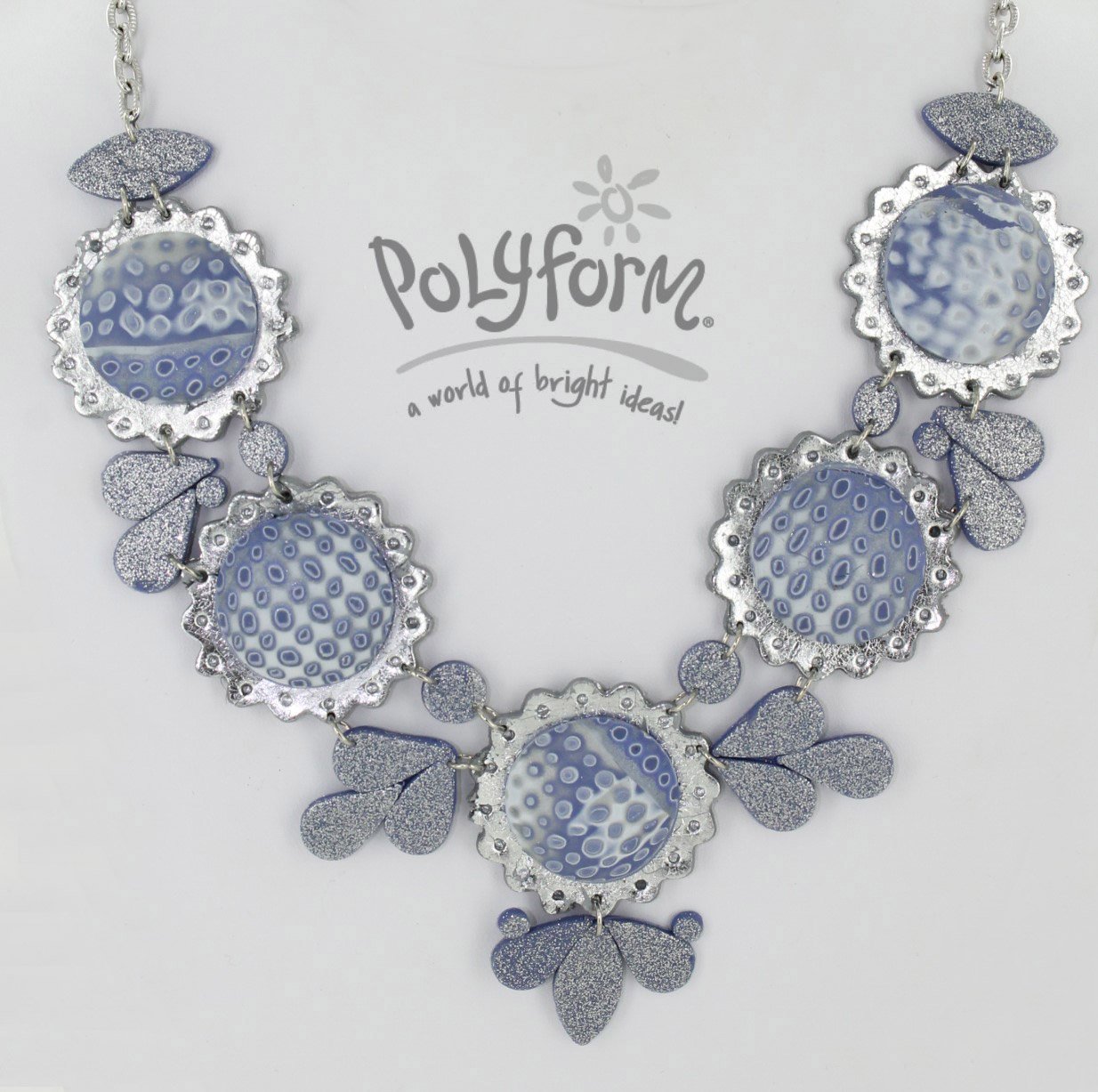 With a fine needle tool, pierce through the pieces as needed to assemble. Bake the pieces according to the directions above. Assemble the pieces with jump rings. Attach a length of chain and clasp at the back.