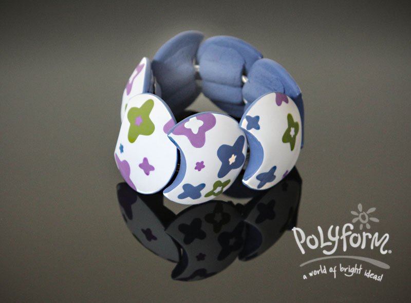 This cool bracelet offers a fresh take on the traditional bracelet shape. The white and pastel tones look great on sun tanned skin! Designed by Anke Humpert