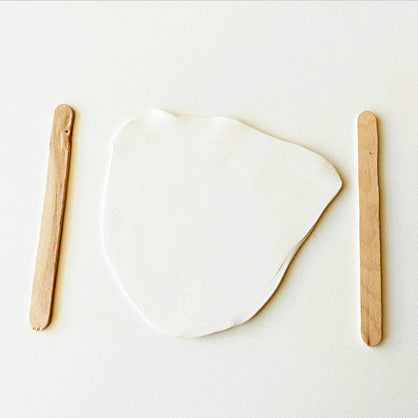 Place two popsicle sticks on each side of the ball; this will be the thickness of the bowl. Roll out the clay till it’s completely flat.