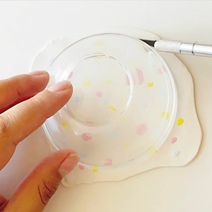 Take the rim of your small dish to make a large circle with your X-Acto knife, this will be the foundation or your bowl.