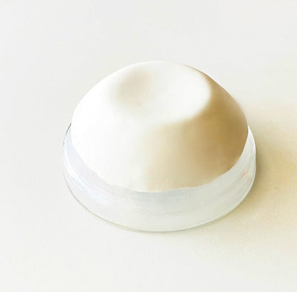 Roll a large ball of white clay and slightly flatten as shown on the image