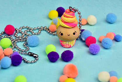 After its cooled, pop your cupcake out of the mold and remove the eye pin, you’re going to add it back in through the bottom so it’s nice and secure. Create a loop at the top using your needle nose tool and add a jump ring. Now you can turn this cutie into a lovely charm for a necklace or keychain!
