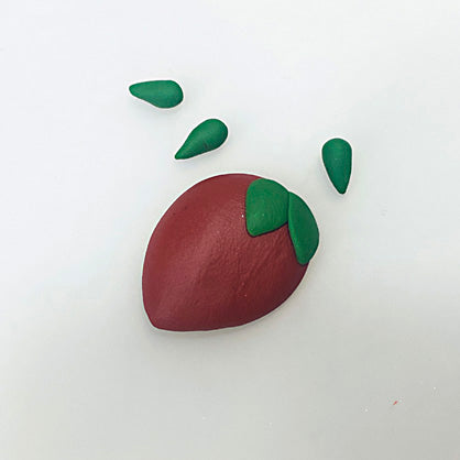 Make tiny little teardrop shapes from Leaf Green. Apply these to the top of the strawberry shape like little leaves flattening them to the strawberry with your fingertips.