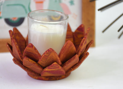 Allow to cool completely before carefully removing it from the juice glass. Fill with a glass votive. It is important to use candles with a glass holder so that the clay is not directly exposed to flame.