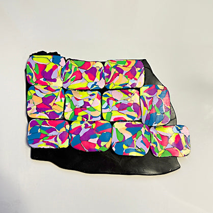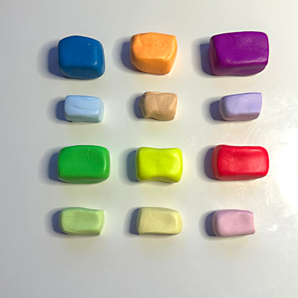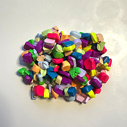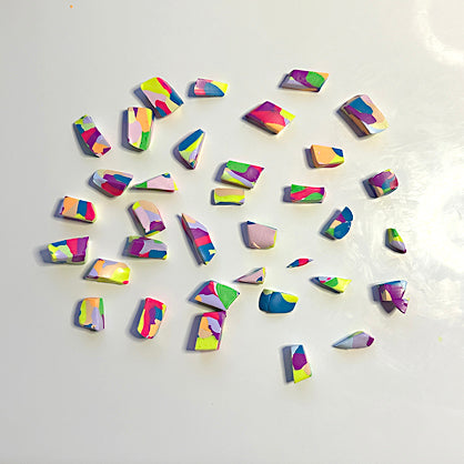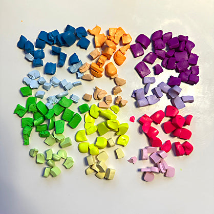 Portion out small, equal amounts of the Neon clay colors. Portion out smaller amounts of pastel clay colors. I chose these proportions because I want the neon colors to come through the most.