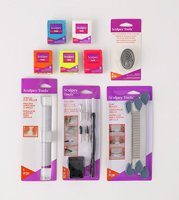 Start with clean hands, unwrap and knead clay until soft and smooth, or condition by running clay though a Pasta Machine. We recommend using a designated machine for clay purposes only. When working with multiple colors, clean hands with soap and water or baby wipes (we have found that baby wipes work best) before switching colors. Shape clay, pressing pieces firmly together. Wash hands after use.