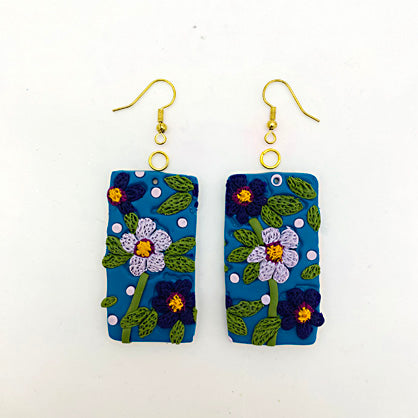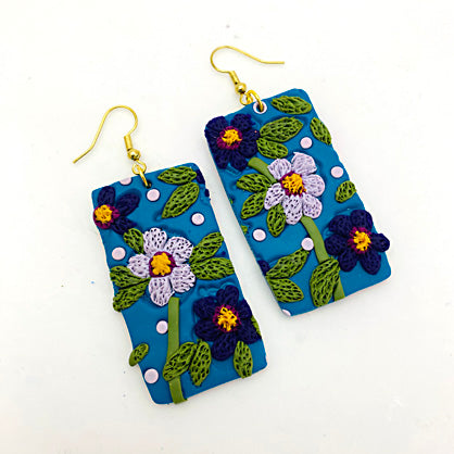 This gorgeous project utilizes a faux embroidery technique and a wonderful color palette to create these showstopper earrings.