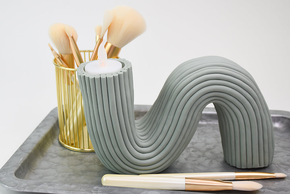 Craft a stunning, curved tealight candle holder with Sculpey’s versatile new Soufflé clay in Succulent.