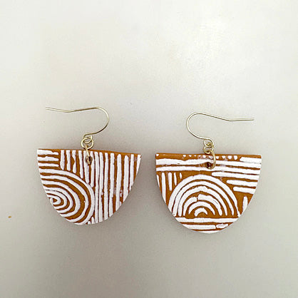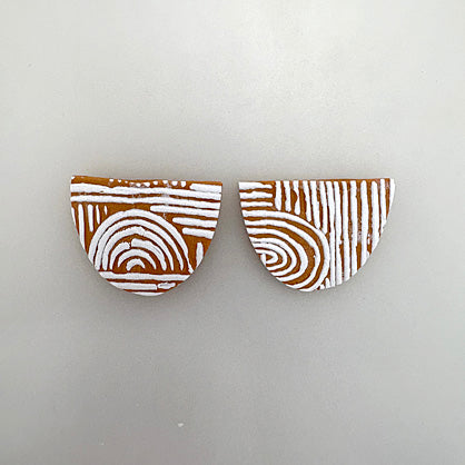 This is a classic technique for clay used to create these dynamic abstract patterned earrings. The rich tones of the Sculpey Soufflé™ Crème Brûlée give a warm pop to the design.